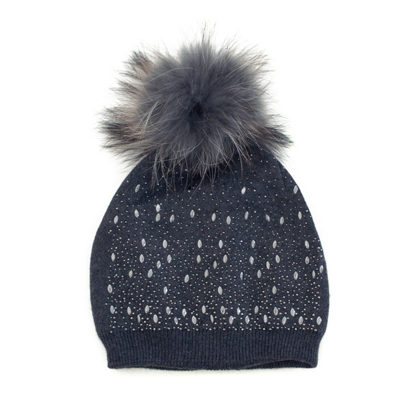 Czapka Damska z naturalnym pomponem