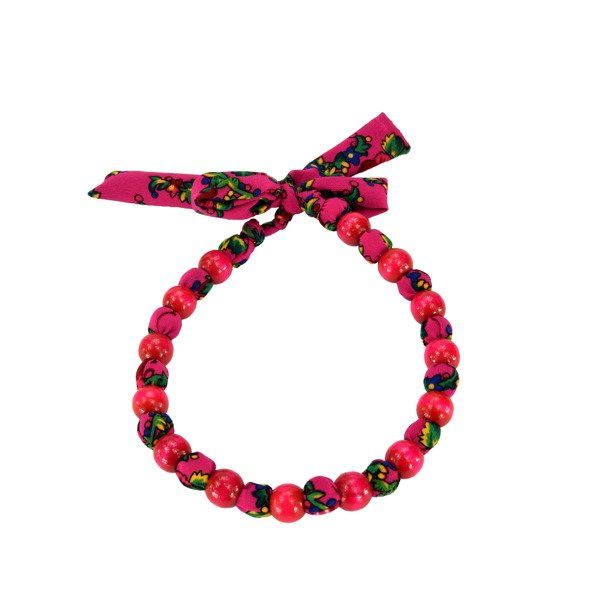 Drewniane korale obszyte materiałem pasują do każdej stylizacji.