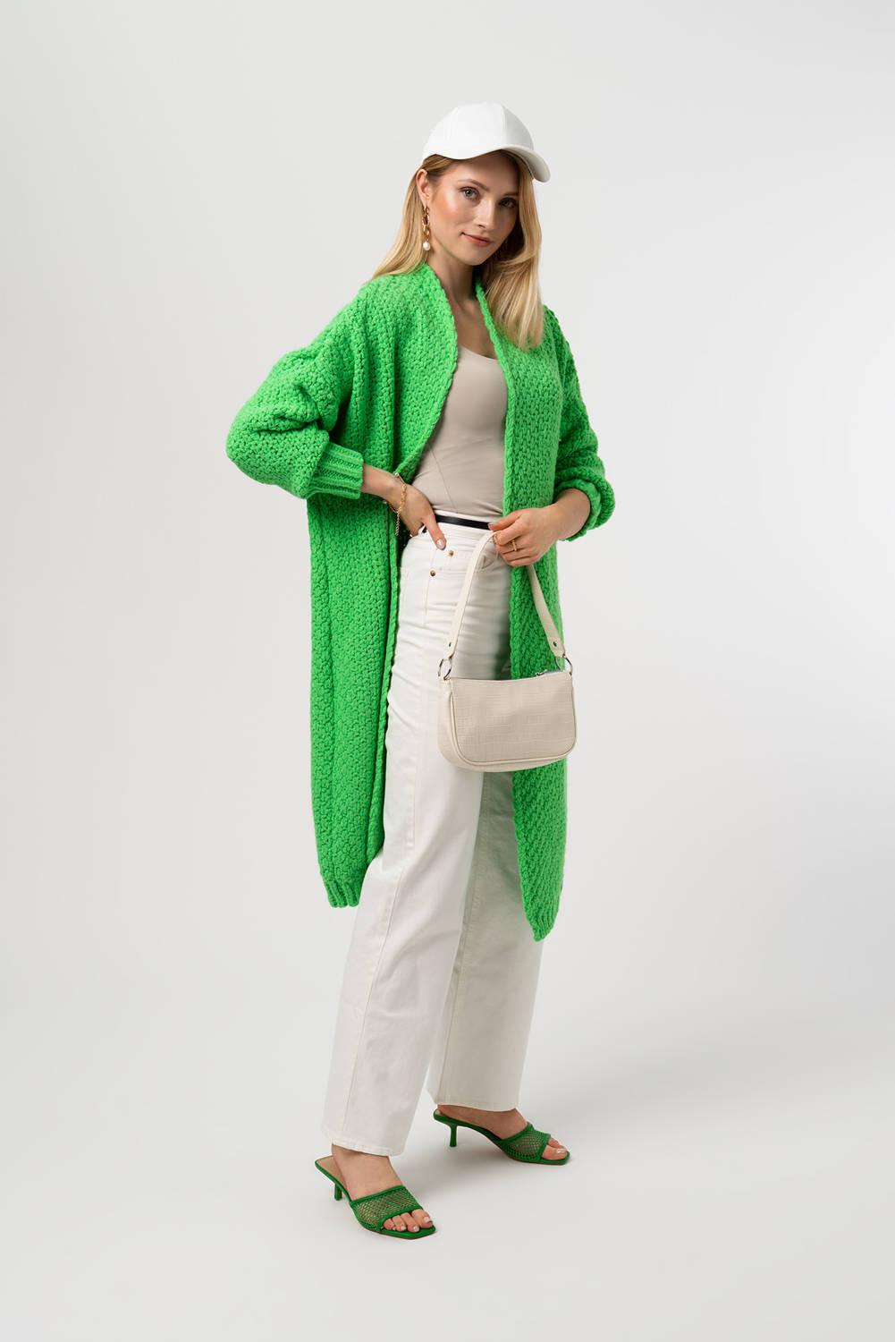 | Schnitt des Pullovers: | Lange Strickjacke |