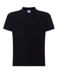 Polo męskie z krótkim rękawem. Zapinane na dwa guziki. Kołnierzyk i rękawy wykończone dzianiną 1x1. Boczne rozcięcia. 100% stabilizowana bawełna czesankowa pique.
