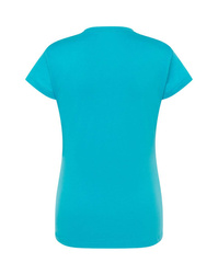 T-shirt damski z krótkim rękawem. Krój dopasowany do sylwetki. Ściągacz przy szyi. Szwy boczne. Podwójne szwy na ramionach i spodzie koszulki. Łatwo usuwalna metka. 100 % bawełna.