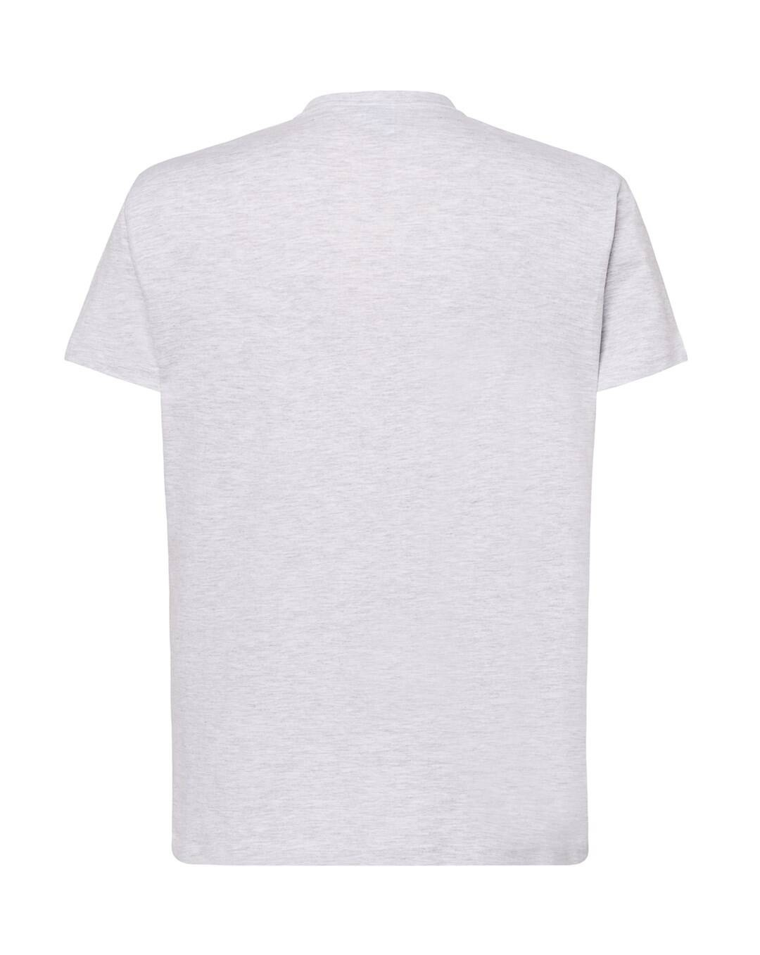 T-shirt męski z krótkim rękawem. Brak bocznych szwów. Podwójne szwy na ramionach. Wzmocniony lycrą ściągacz. Taśma wzmacniająca. 100% bawełna stabilizowana.