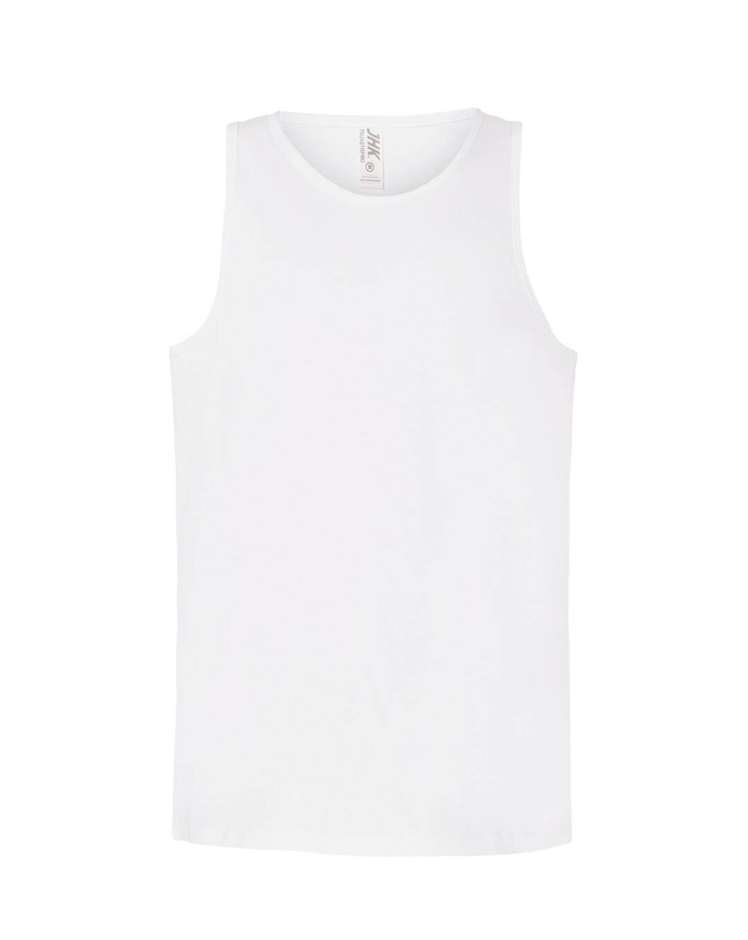 T-shirt męski bez rękawów. Single jersey. Podwójne szwy na ramionach i spodzie koszulki. 100% bawełna.