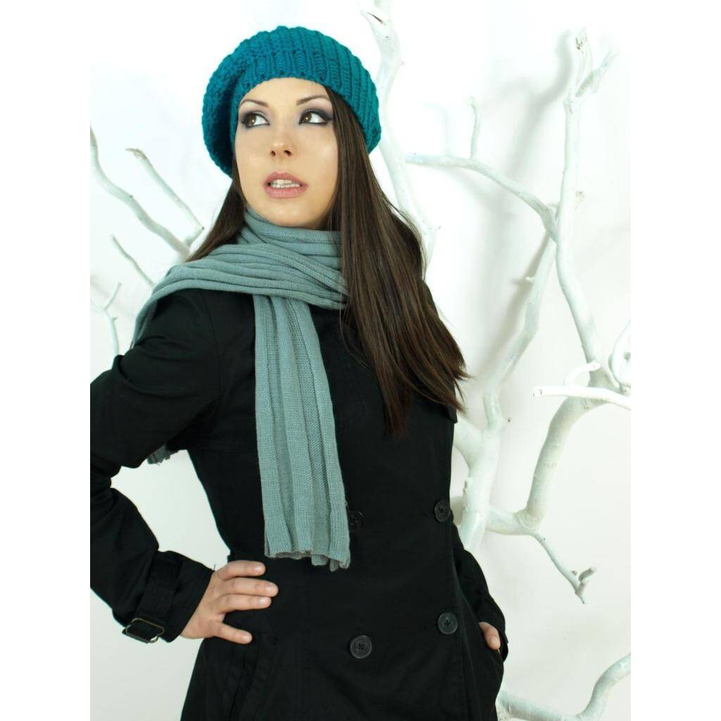 Uniseksowy, klasyczny szal z dzianiny ściągaczowej.