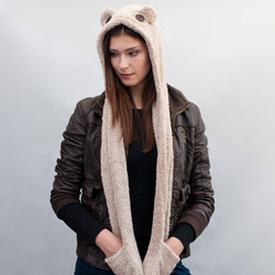 Oryginalny szal z kapturem w formie misia i kieszonkami.