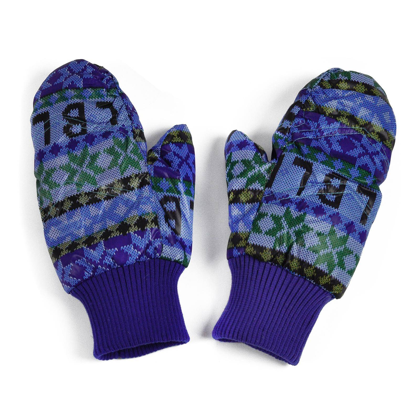Jednopalczaste puchowe rękawiczki w gwiazdki i literki.