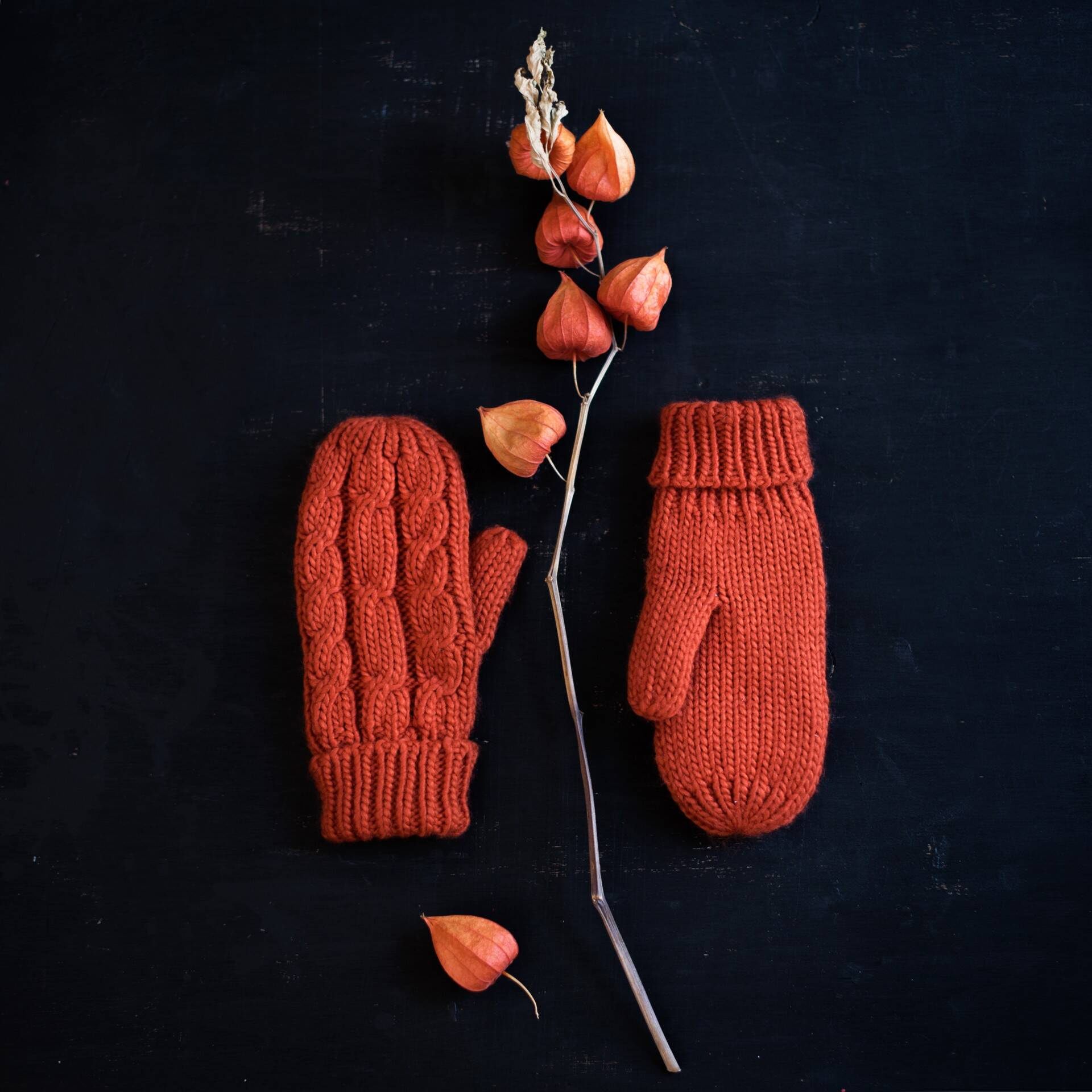 Zimowe rękawiczki jednopalczaste zdobione warkoczami.