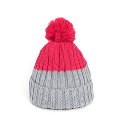 Urocza dwukolorowa dziecięca czapka z pomponem.