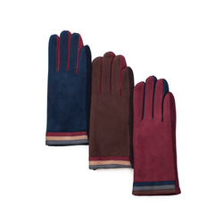 Eleganckie rękawiczki w ciekawym fasonie z trzema paskami przy nadgarstkach.