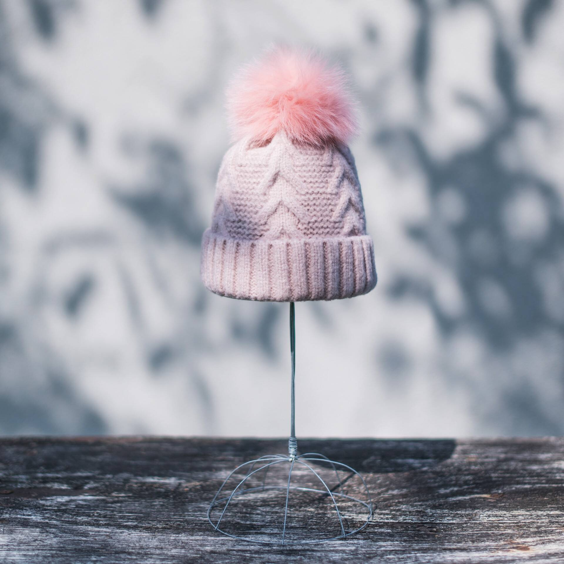 Cieplutka czapka zimowa zdobiona futrzastym pomponem.