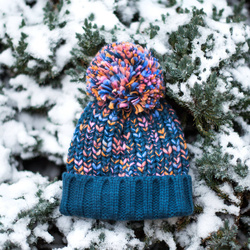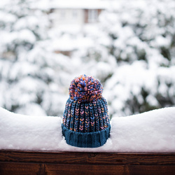 Posiada duży pompon wykonany z włóczki.