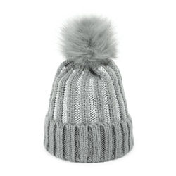 Ciepła czapka z pomponem i srebrną nicią.
