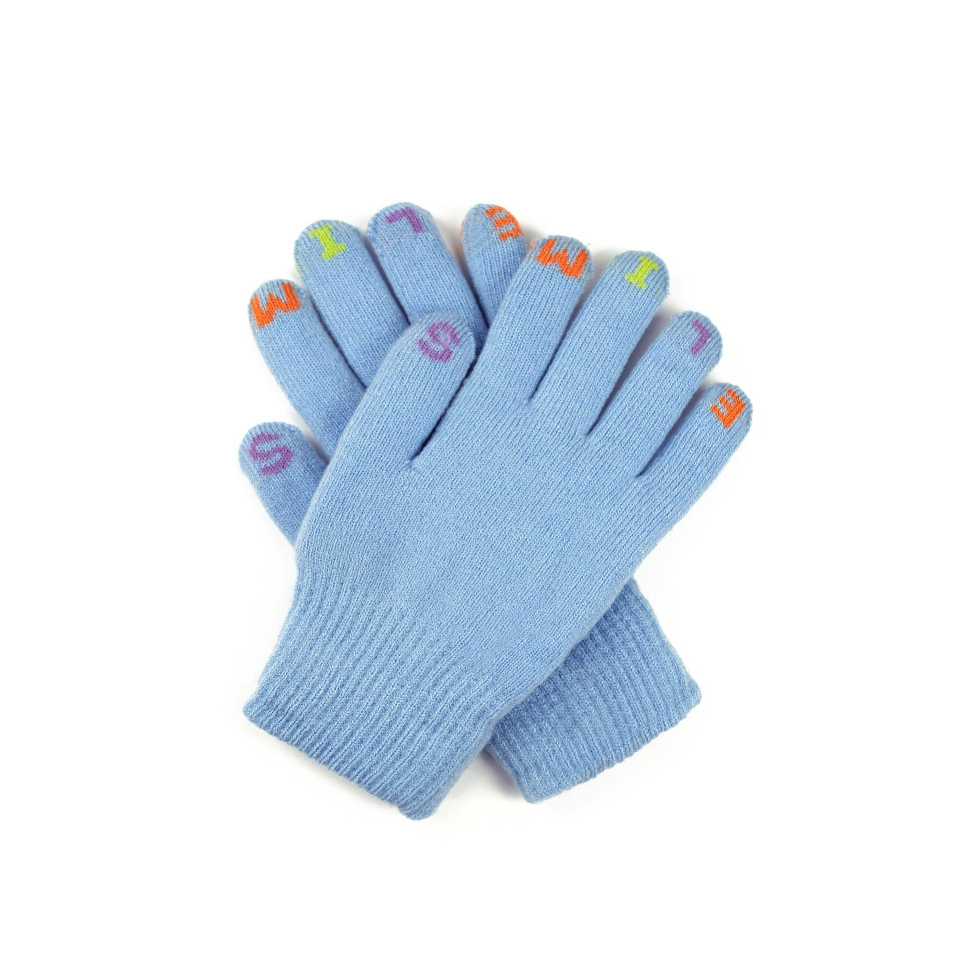 Dziecięce, ocieplane rękawiczki z literkami.