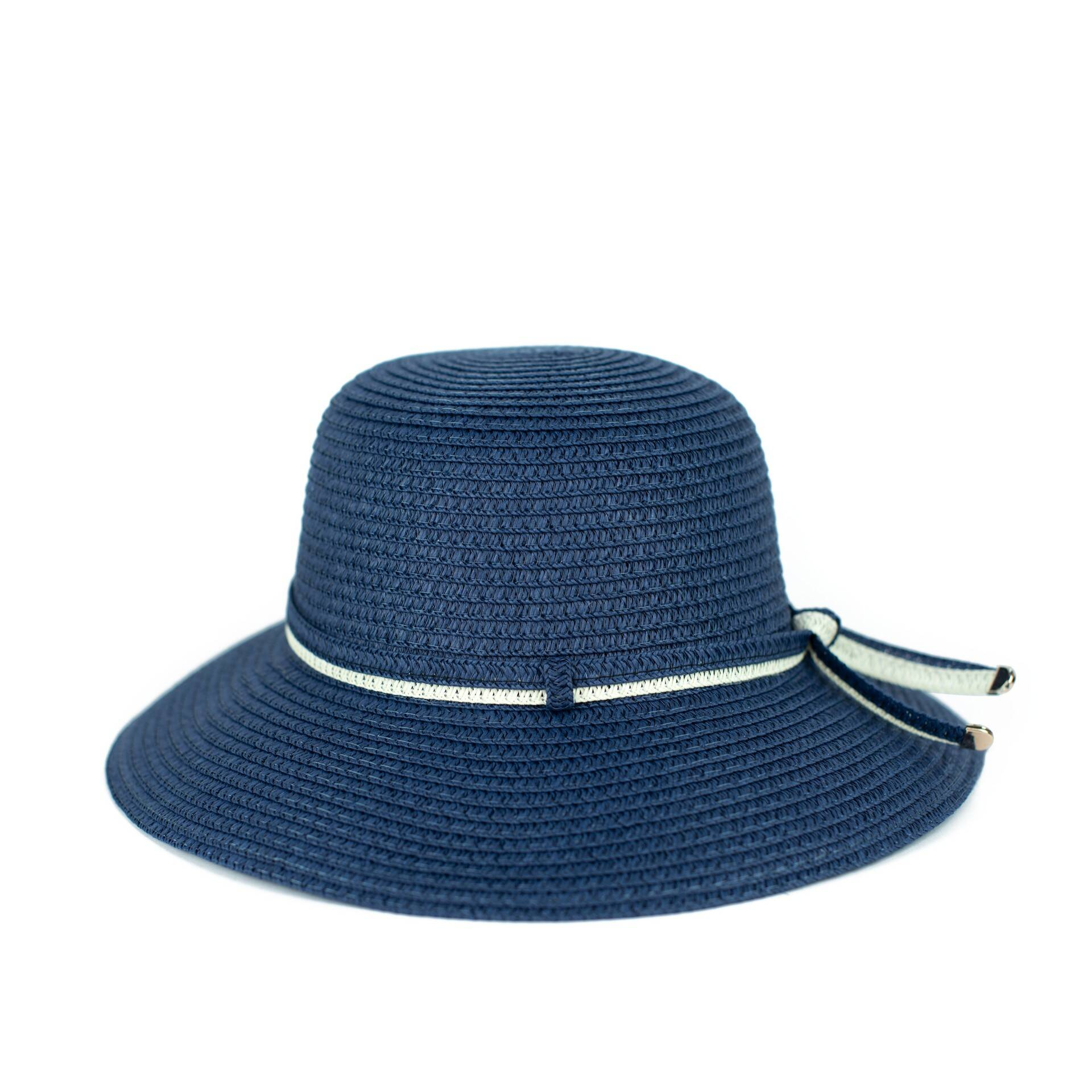 Letni kapelusz ze średnim rondem z ozdobnym paseczkiem.