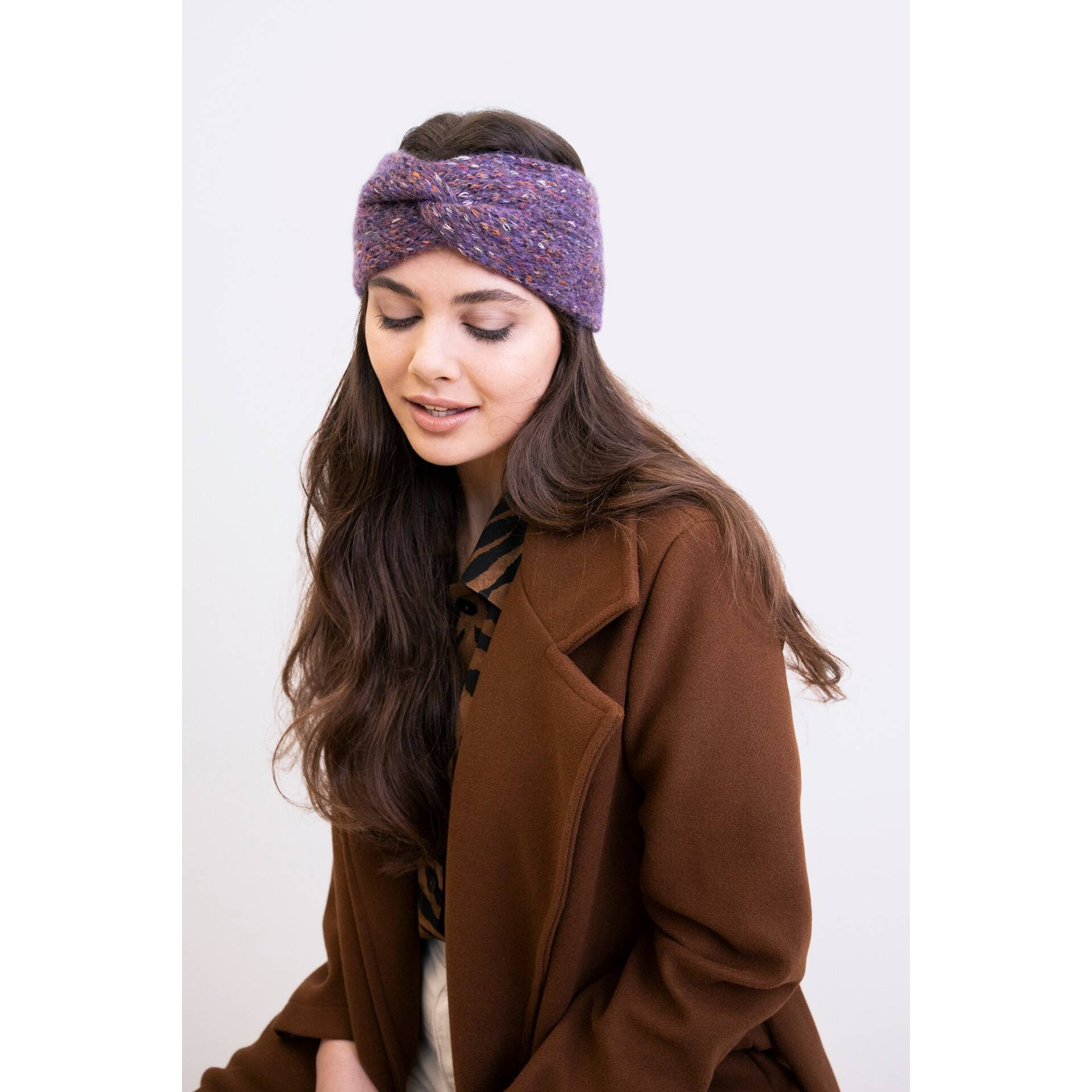 Ciepła opaska z ozdobnym detalem.