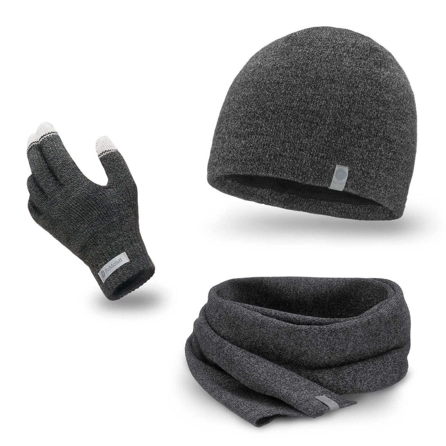PaMaMi Komplet męski na zimę - Czapka, szalik, rękawiczki - Ciemnoszary