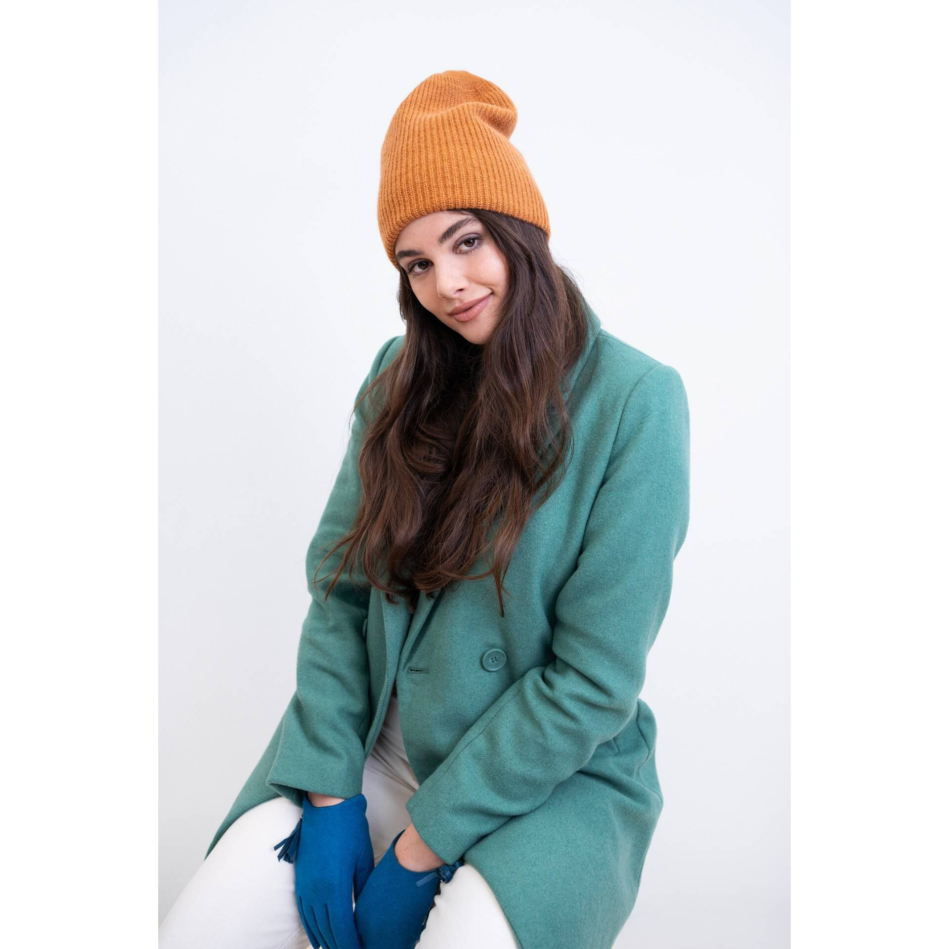 - Angorowa czapka typu beanie – ciepła i delikatna