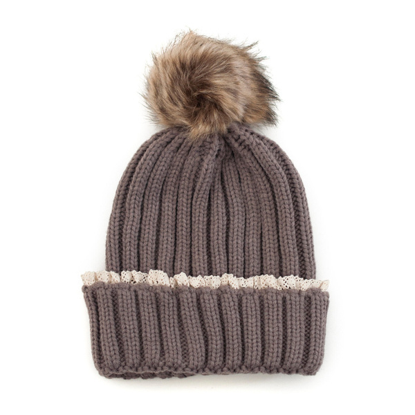 CZAPKI Z POMPONET Z FUTRA JENOTA